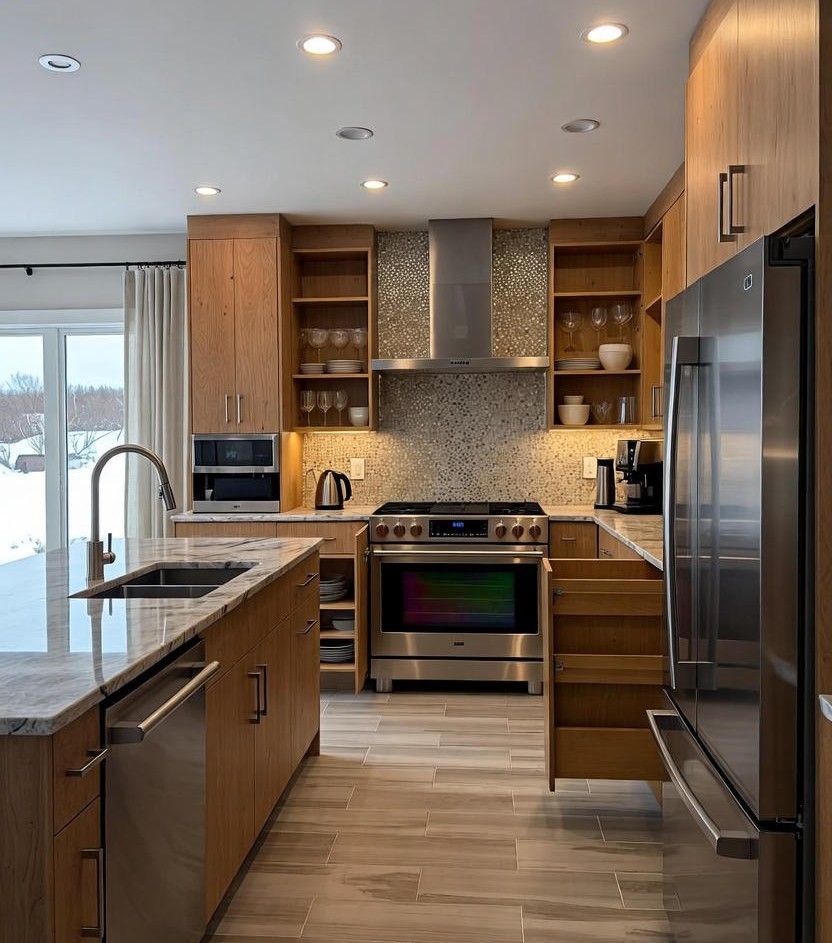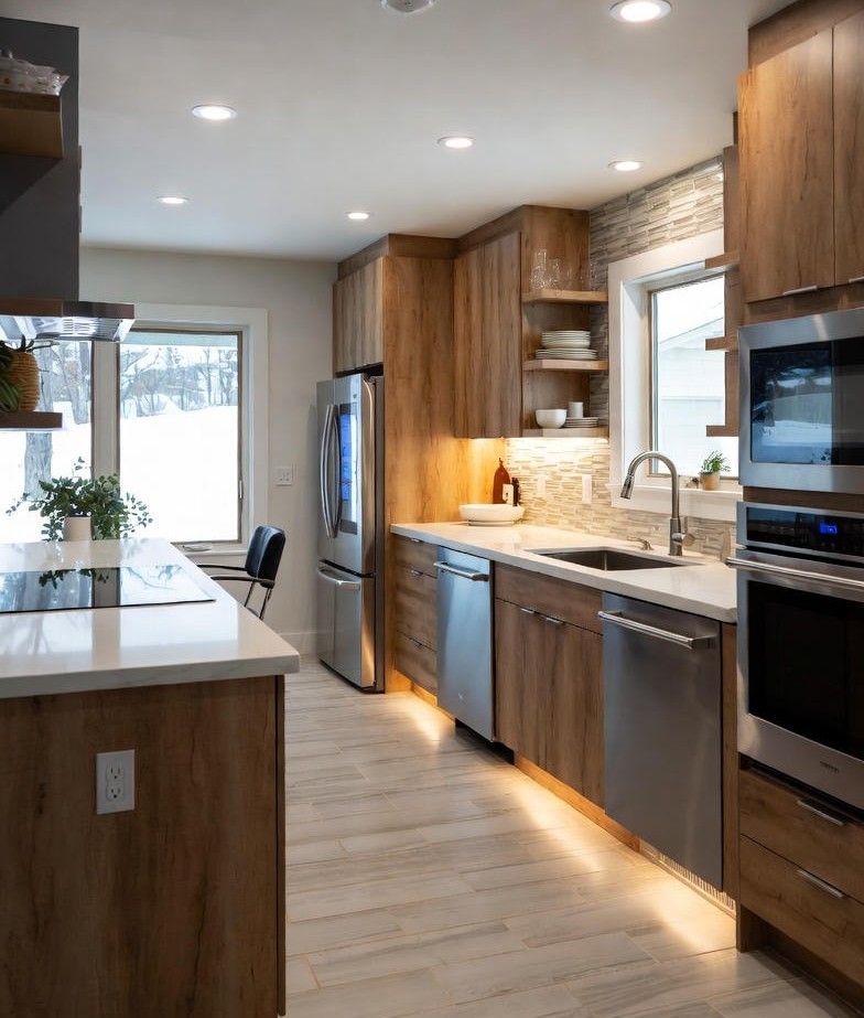 - Warm Wood Tones and Organic Neutrals: Wood grain cabinetry (especially white oak) surges past painted options, paired with natural quartzite counters for cozy Illinois winters.